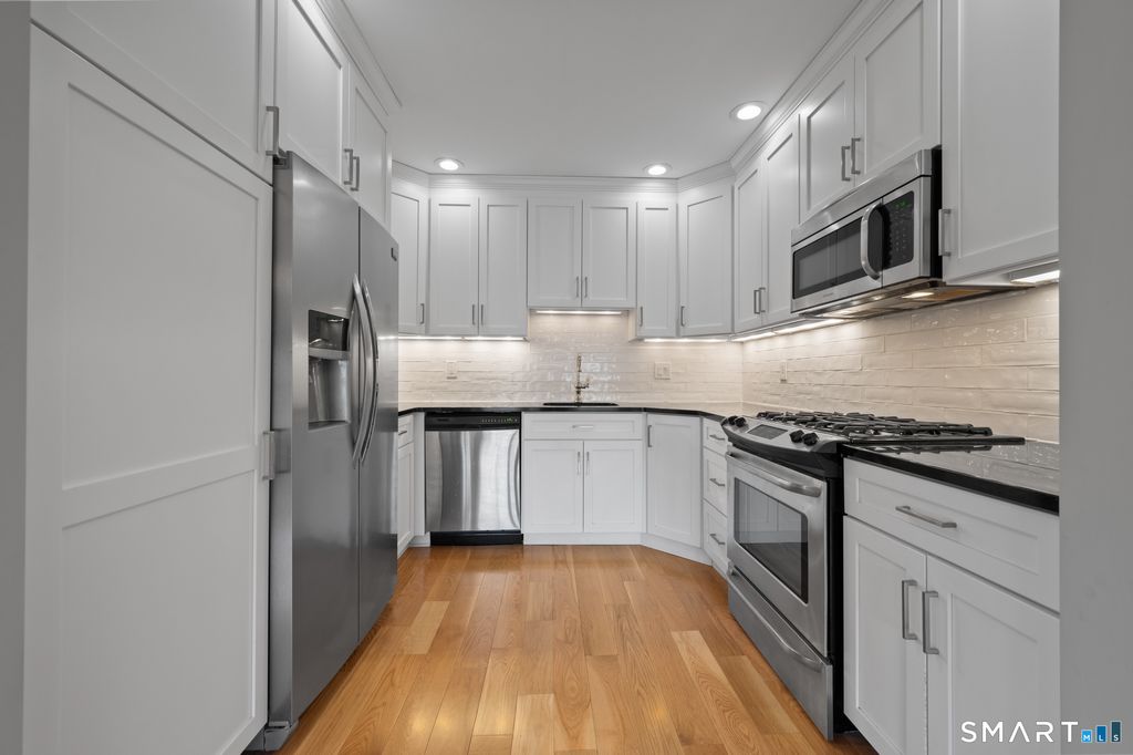 Welcome to Barclay Court, a historic condo community offering a peaceful yet vibrant lifestyle in an unbeatable location. This move-in ready home perfectly blends style, comfort, and convenience, with thoughtful upgrades throughout. The updated kitchen is a true standout, featuring sleek stainless steel appliances, granite countertops, recessed lighting, and a stunning backsplash that adds a modern touch. The living areas showcase hardwood flooring throughout the unit, while wall-to-wall windows fill the space with natural light. This unit offers three bedrooms, each with ample closet space, providing both comfort and functionality. The spacious primary suite and guest bathroom have been tastefully remodeled with updated finishes and a fresh, contemporary look. A rare and highly sought-after bonus this unit includes two parking spaces in a heated, covered garage, offering year-round convenience. The HOA fee includes heat, hot water, and central air, adding even more value and ease of living. Ideally located just steps from Elizabeth Park, you'll enjoy easy access to the beautiful rose gardens, scenic walking paths, and nearby Blue Back Square and West Hartford Center, offering a variety of shopping, dining, and entertainment options. With convenient access to major highways, this home truly has it all. Don't miss the opportunity to make this exceptional condo yours!
