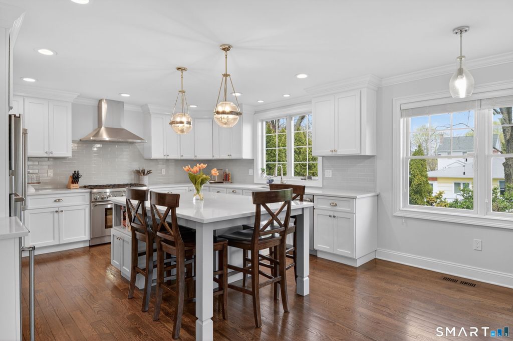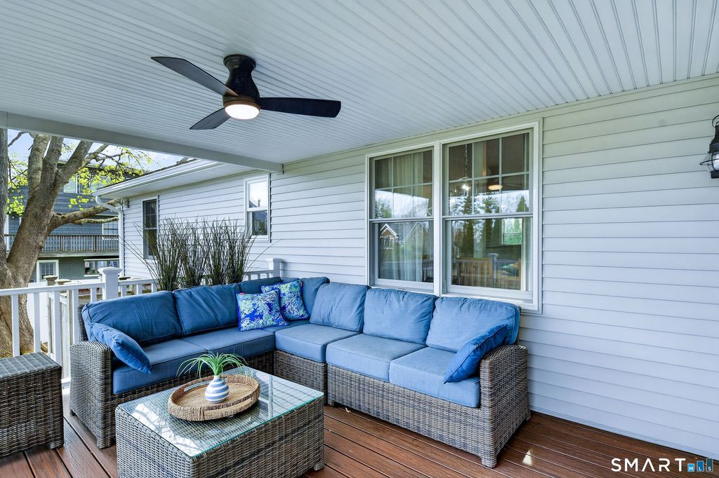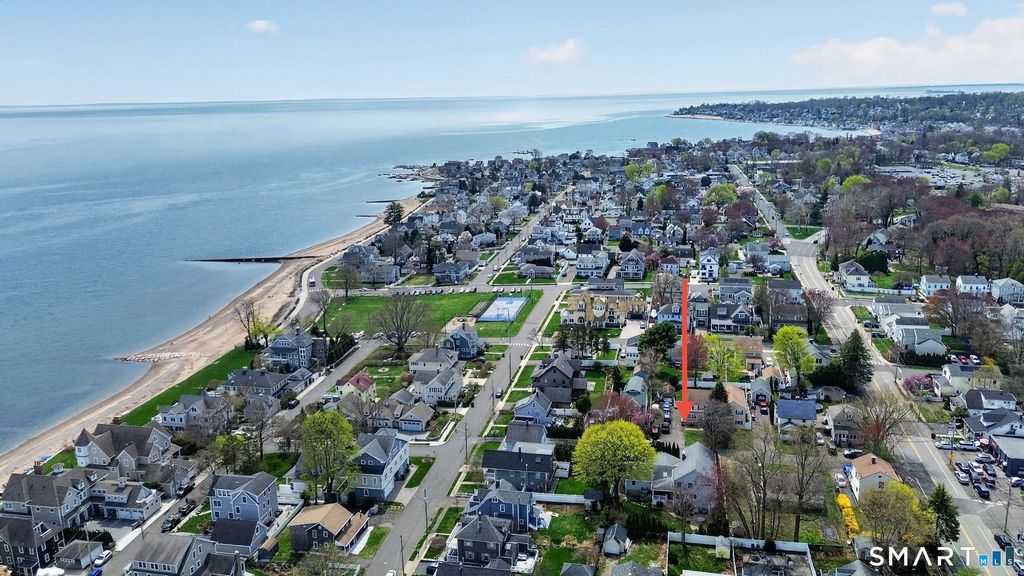 Coastal Living in Woodmont - Steps to the Beach! Welcome to Woodmont! This stunning 4-bedroom, 4-bath coastal home is perfectly situated on a quiet one-way street just two short blocks from Woodmont's beautiful sandy beaches. This home delivers the relaxed beach life style buyers are searching for. An inviting front porch sets the tone as you enter into a thoughtfully designed open-concept main level. The spacious living room with fireplace flows seamlessly into a generously sized dining area and an impressive gourmet kitchen featuring a large center island, quartz countertops, custom tile backsplash, and stainless steel appliances. Sliders lead to a covered deck, ideal for indoor-outdoor living. The main level also includes a en-suite bedroom with full bath, an additional bedroom with water views, and a guest bath-perfect for flexible living or hosting guests. Upstairs, you'll find two bedrooms, both with water views including, an enviable primary suite with a custom walk-in closet and a beautifully appointed full bath with a custom tile shower. A second bedroom also features its own full bath, to ensure privacy. The partially finished lower level is a great home office with abundant storage. Hardwood flooring and high-end finishes are showcased throughout the home. Step outside to a beautifully landscaped private yard with room for a pool. Enjoy walkability to restaurants, shops, and the Woodmont recreational area. A short ride to Metro North/New York City train.