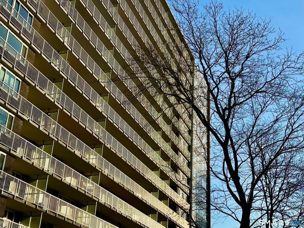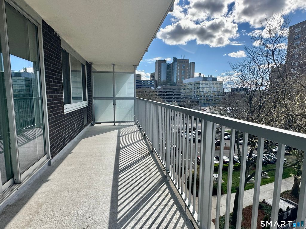 This bright, comfortable one-bedroom at University Towers is ideally located in a fully walkable setting. Mere minutes from downtown New Haven, Yale, Yale New Haven Hospital, and surrounded by restaurants, shops, theaters, and cultural attractions. The fully renovated galley kitchen features granite countertops, updated cabinets and newer appliances. Plentiful storage with a walk-in pantry and multiple floor-to-ceiling closets. Large thermopane windows bring in natural light with updated blinds for privacy and light control. The private, spacious balcony entertains beautiful open views over the pool, the city skyline, and West Rock. Bleached gray oak vinyl flooring continues throughout the unit for a clean contemporary look. University Towers is a full-service co-op offering 24/7 Front Desk, a secure Mail Room, a large Laundry Room with updated machines, a renovated in-ground pool, and bicycle storage. The monthly HOA includes heat, hot water, property taxes, water, sewer, trash removal, on-site maintenance and property management. Cash purchase only - no investors - owner occupancy required.