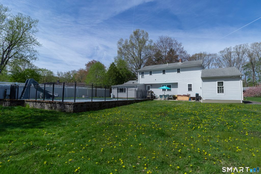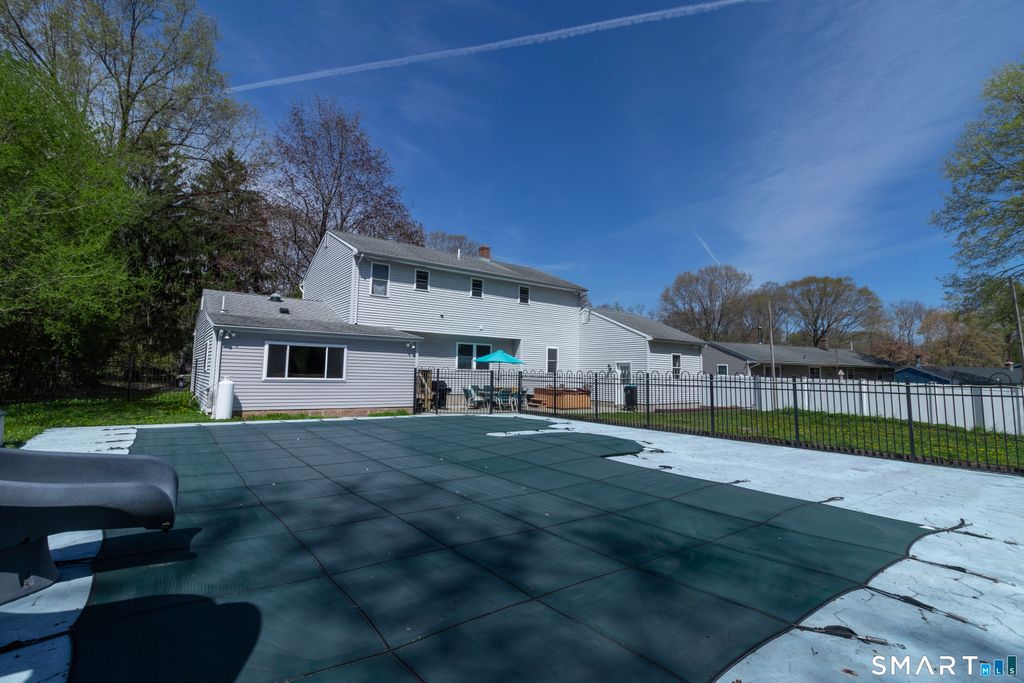 Rare Wallingford Colonial with In-Law Apartment in the Ridges! A standout feature of this 4-bedroom, 3.5-bath home is the first-floor 1-bedroom in-law suite/apartment. It includes a separate entrance, galley kitchen, living room/dining area, and a full bath with tub. The main home offers 3 large bedrooms and 2.5 baths, generous common areas, and a multi-functional layout designed for everyday living and entertaining. Check out the chef's AND baker's kitchen with commercial gas stove and exhaust hood, oven, microwave, granite counters, floor-to-ceiling all-wood cabinets with appliance garages, instant hot water, filtration, and disposal. A mudroom and 1/2 bath by the front door offer lots of space to hang coats and shoes, and a way to freshen up before entering the main house. The radiant floor in the tiled areas on the first floor provide warmth underfoot in winter, and cooling in the summer, reducing energy bills year-round. A humidifier connects to the HVAC system, keeping everyone comfortable all winter. The upstairs has a primary suite with cathedral ceilings, walk-in closet, and an extra-large bath with walk-in shower. The upper floor has two more large bedrooms, a dedicated laundry room, a reading nook (or office space), and an extra-large bath with double vanity and shower with tub. A sunny level backyard with an in-ground pool (and hot tub and slide), a shed, and established garden beds are ready for summer fun!