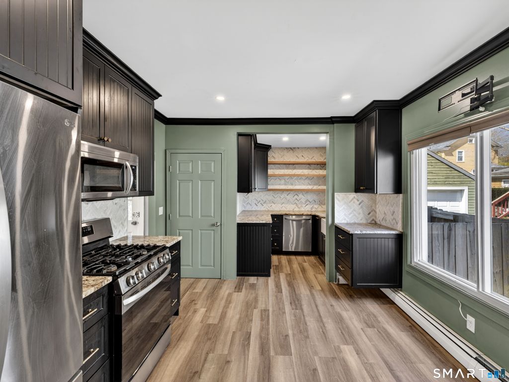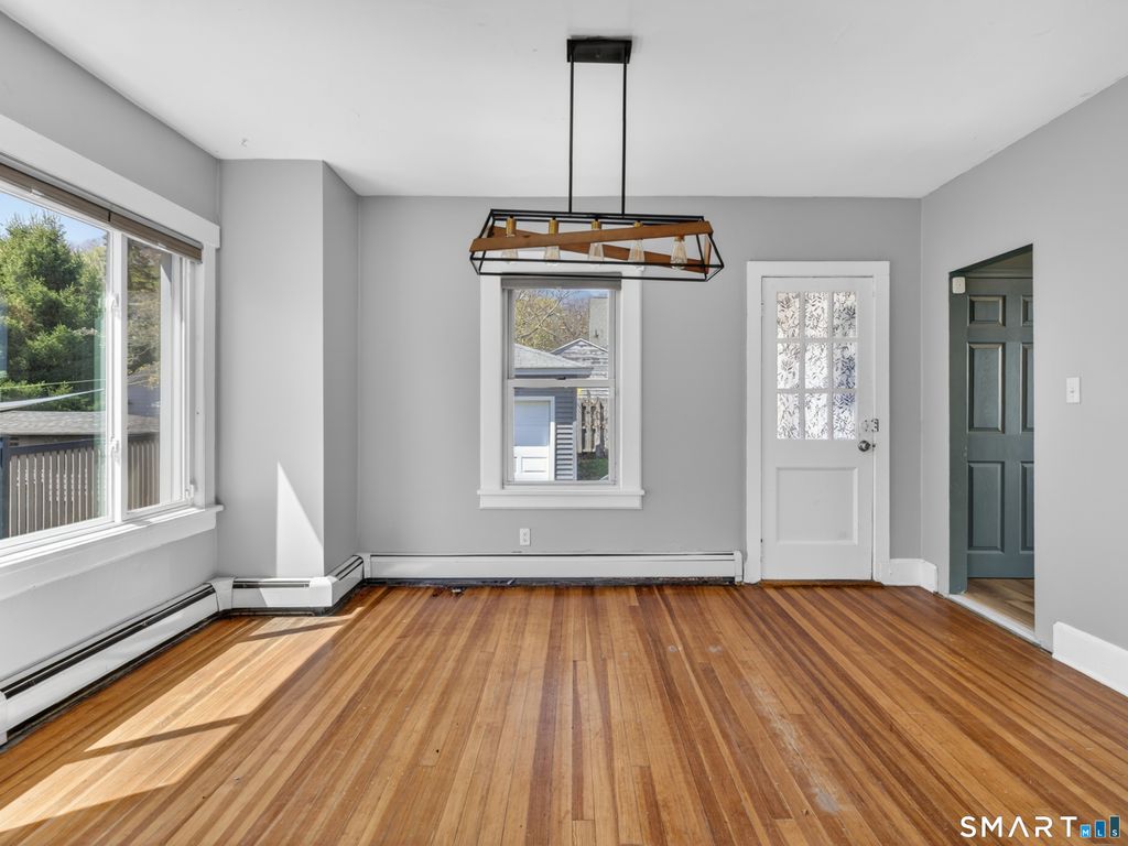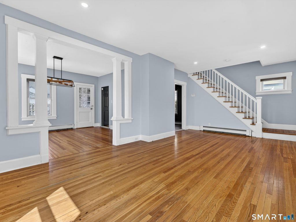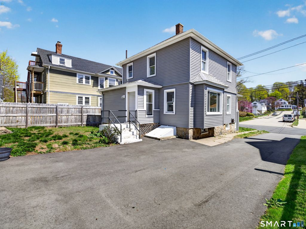 This 3-bedroom, 1.5-bath Colonial has been updated where it counts, and the care put into it is obvious. Hardwood floors run through the main living areas, natural light pours in through oversized windows, and the woodwork throughout gives it a character that's hard to manufacture. The kitchen delivers - quartz countertops, soft-close shaker cabinets, LVP floors, and stainless appliances. A remodeled half bath is tucked conveniently off the kitchen, and upstairs you'll find three hardwood bedrooms and a fully updated full bath with a quartz vanity, tile floors, and tub/shower combo. The basement offers your laundry hookups and enough flex space to actually use - home office, workout room, overflow storage, etc. Behind the scenes, the important stuff has been addressed: plumbing, electrical, siding, and gutters all updated, composite decking on the front porch, and a detached two-car garage with new siding and windows. Practically located near I-95, the Coast Guard Academy, local parks, shopping, and downtown New London with Amtrak and the Ferry.