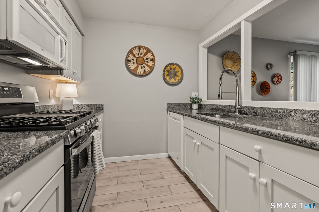 Welcome to this beautifully updated 2 bedroom, 1.5 bath condo in the highly desirable and well established Ridge at Talcott Notch community; ideally located just minutes from UCONN Medical Center and close to West Hartford center. With over 1,600 sq ft, this home has everything you'll need to live comfortably at an affordable price point. The updated kitchen features granite countertops and stainless steel appliances and overlooks the generously-sized dining area. The spacious living room features a cozy wood-burning fireplace and sliders leading to a private patio that overlooks woods, creating your own peaceful oasis. Rounding out the first floor, you and your guests will appreciate an updated half bath with granite counters and tiled flooring. Upstairs, you'll find two generously sized bedrooms, a remodeled full bath, and a versatile loft space with vaulted ceilings and skylight-ideal for a home office, reading nook, or additional living area. Second-floor laundry, just steps from the bedrooms, and loads of storage space add additional convenience. Additional highlights include central air, natural gas heat, a detached garage, plenty of additional open parking, and access to community amenities including an in-ground pool and clubhouse. HOA covers heat, hot water, grounds maintenance, snow removal, trash, sewer, and more for easy, low-maintenance living.