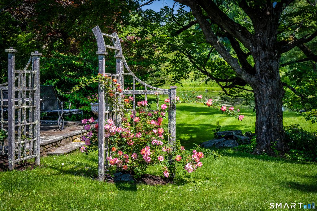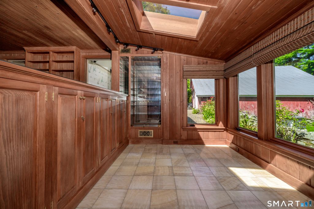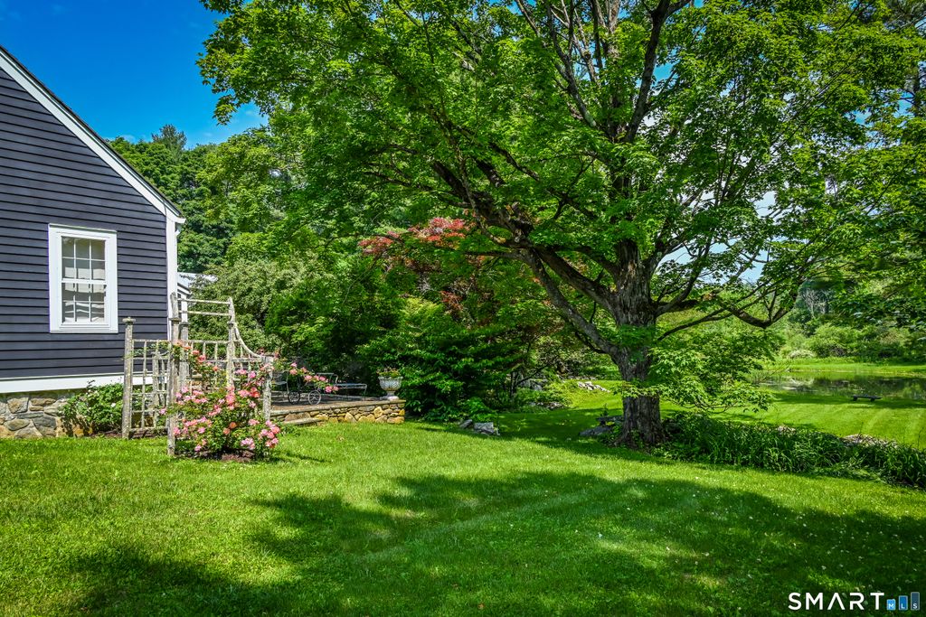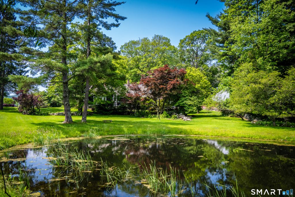 Lovingly named "Nid D'Alcyon," French for Kingfisher Nest, by the current owner, this truly enchanting home is rich in history. This beautiful four-bedroom antique, dating to circa 1745, is set on one of Sharon's most scenic roads and tells a captivating story of life, travel, and love. Nestled within exquisite gardens and surrounded by a serene pond, mature trees, and perennial plantings, the setting is both peaceful and picturesque. The current owner has lovingly stewarded the property for 37 years, thoughtfully enhancing it while honoring its character. With great care, the home was renovated to maximize natural light-an exceptional quality for an antique-through raised ceilings where possible and thoughtfully designed additions that invite sunlight throughout the day. Improvements include central air conditioning, a full-house generator, and an expansion of the original petite footprint typical of antique homes. A first-floor primary suite with vaulted ceiling and en-suite bath featuring a custom fireplace was added, along with a mudroom, sunroom, and chef's eat-in kitchen. The formal living room offers another fireplace and beautifully crafted built-ins, creating a warm and inviting retreat. Every corner reflects exceptional care, seamlessly blending antique charm with modern comfort. This rare offering also includes a heated Gunite pool and barn, all set on five acres overlooking a dreamy pond.