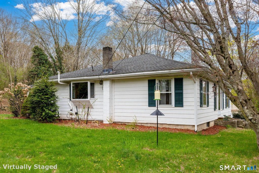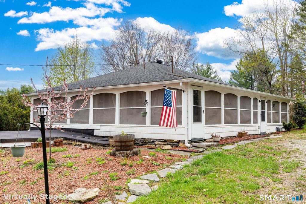Welcome home to this spacious and charming ranch nestled on a beautifully private lot of nearly a full acre, framed by classic New England stone walls and cleared land that creates a serene retreat you will love coming home to. This three-bedroom, one and a half bath home offers comfortable single-level living with timeless character throughout. Step inside to a warm and inviting living room anchored by a cozy fireplace, flowing naturally into a generous eat-in kitchen complete with abundant cabinetry and plenty of space for everyday meals and entertaining. Beautiful hardwood floors run throughout the main level, adding warmth and continuity from room to room. Three ample-sized bedrooms provide comfortable accommodations for everyone, while the full basement offers tremendous potential for additional living space, a home gym, or storage. The showstopper of this home is the large three-season enclosed wrap-around porch, a perfect spot to enjoy your morning coffee or evening gatherings surrounded by the sights and sounds of nature. An oversized garage with a new septic system installed in 2021 ensures worry-free living for years to come, new storm windows added on the porch side (2022), and new oil tank (2022). Located close to the casinos, golf courses, tennis and basketball courts, hiking trails along the Shetucket River, and local playgrounds, this property delivers the perfect balance of privacy and recreation. **HIGHEST AND BEST BY MONDAY 4/27 AT 12PM**