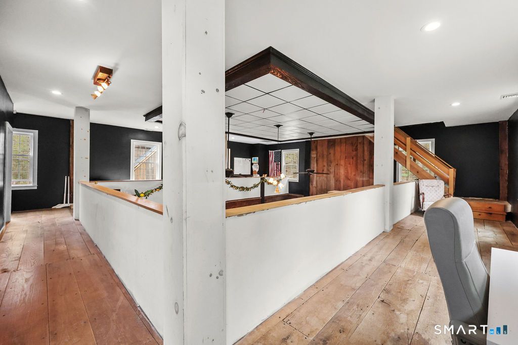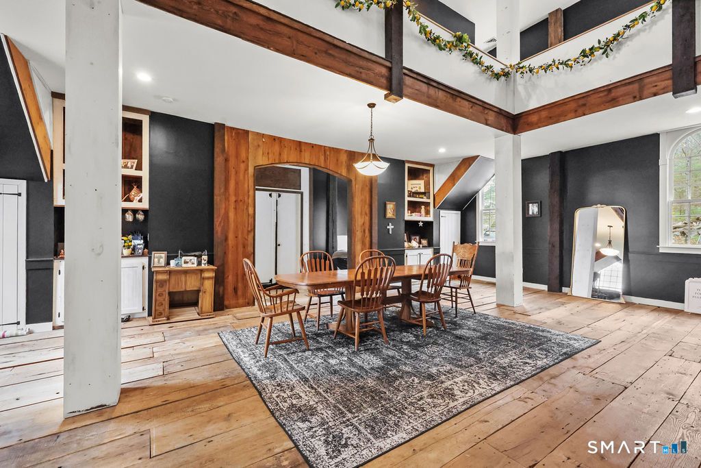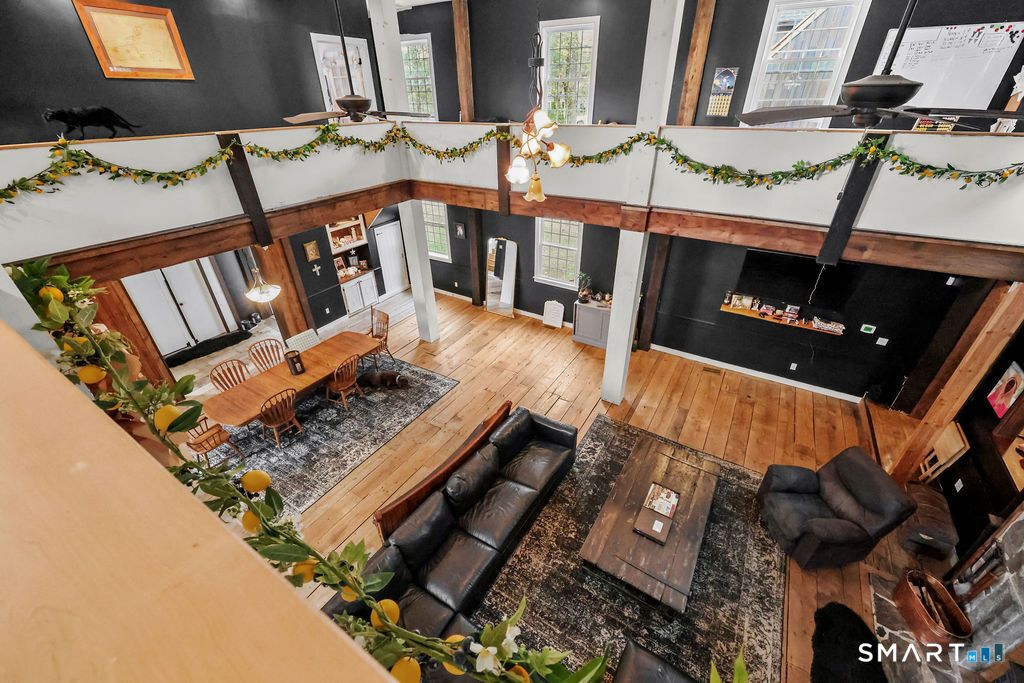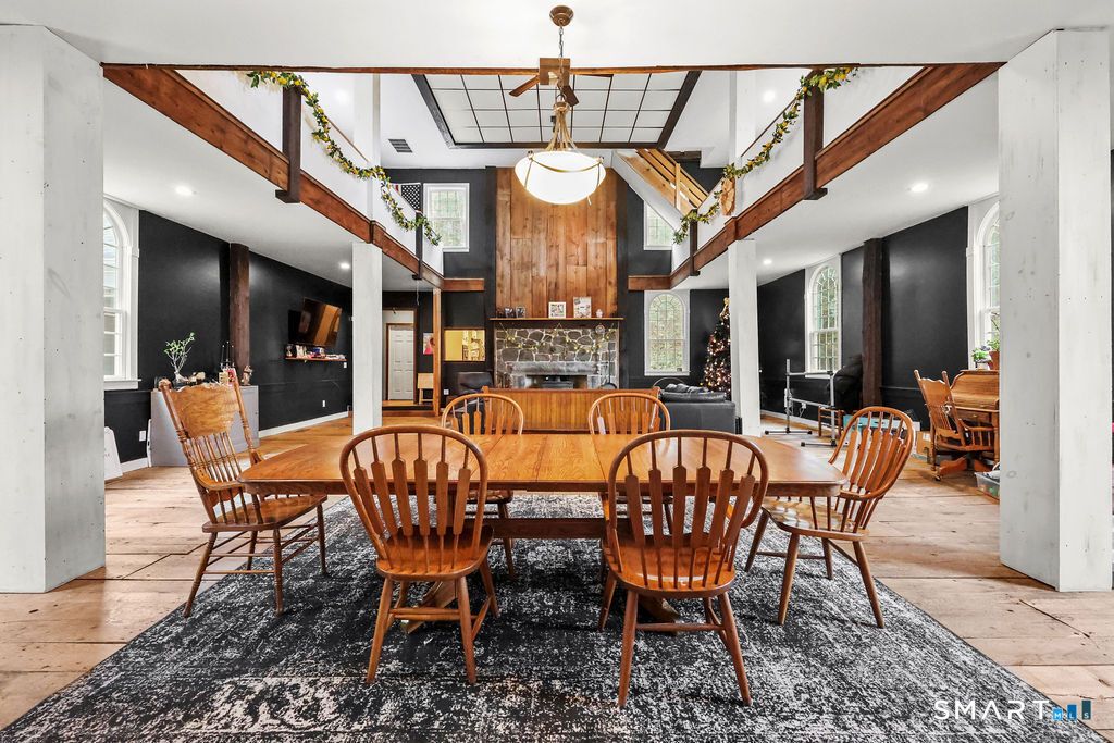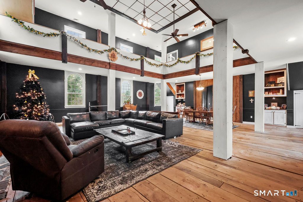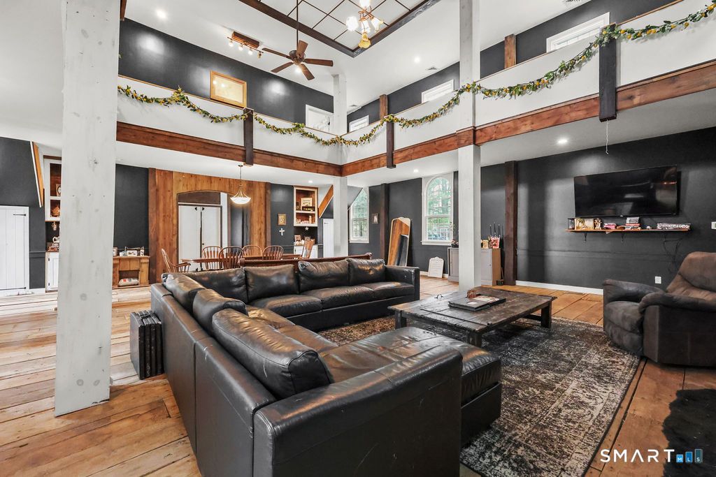 Once a Historic 1700's church, this space has been graciously restored into a Beautiful Colonial Home! Upon entering you are mesmerized by the cathedral ceilings encompassing the living & dining area with a grand fireplace, wood burning stove, built-ins, original wide planked flooring and an abundance of natural light. Located above are balconies that have been structurally restored allowing for an office space, library or art studio along with 2 bedrooms centered between them. The Primary Suite is located on the third floor showcasing beautiful wood beams, lounge area to relax, and full bath with double sinks & remodeled walk in shower. You can return to the first floor from one of the two staircases leaving the balcony. Off the living room is the Gourmet Kitchen with Granite tops, SS Appliances, Jenn-Air 5 burner propane stove, large island and slider to outdoor patio. Main level also features a 4th bedroom/office, full bath with tub shower, mud room with washer/dryer and access into the 3 bay garage. Spacious 760sf of unfinished loft area above the garage is perfect for an in-law apartment, game & theatre room, or additional bedrooms and baths. Updates to the home in last 10 years: Roofs, Windows, Sliding Glass Doors, 2 Energy Efficient furnaces, hot water heater, central air, updated electrical with transfer switch for a 20kw generator, plumbing, insulation, remodeled kitchen, chimney repair and Water Softener System. Home sold As-Is. Schedule a private showing today