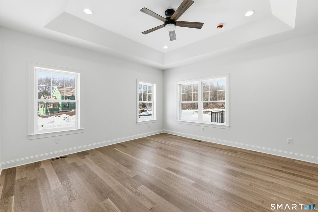 Rarely available new construction home at 42 Holcomb St in Simsbury! This stunning 4-bedroom, 2.5-bath residence offers thoughtfully designed living with high-end finishes throughout. The first-floor primary suite features a large walk-in closet and a spacious full bath complete with a dual vanity, a relaxing soaker tub, and a large walk-in tiled shower with custom finishes. Convenient first-floor laundry is located just steps away. Just off the front entry, a private office provides the perfect work-from-home space. Enjoy open-concept living with a bright, inviting living area that flows seamlessly into a designer kitchen complete with stainless steel appliances, dovetail white shaker cabinets, and premium details. Beautiful 5-inch oak hardwood floors run throughout the entire home, including all bedrooms. A generous pantry provides ample storage, and a composite deck off the rear is perfect for outdoor entertaining. Upstairs offers two spacious bedrooms plus a versatile 4th bedroom ideal for a home office or playroom. The unfinished walkout basement features 9-ft ceilings and direct access to the backyard, offering endless possibilities for future expansion. Complete with a 2-car attached garage, this is a rare opportunity to own new construction in a prime location!