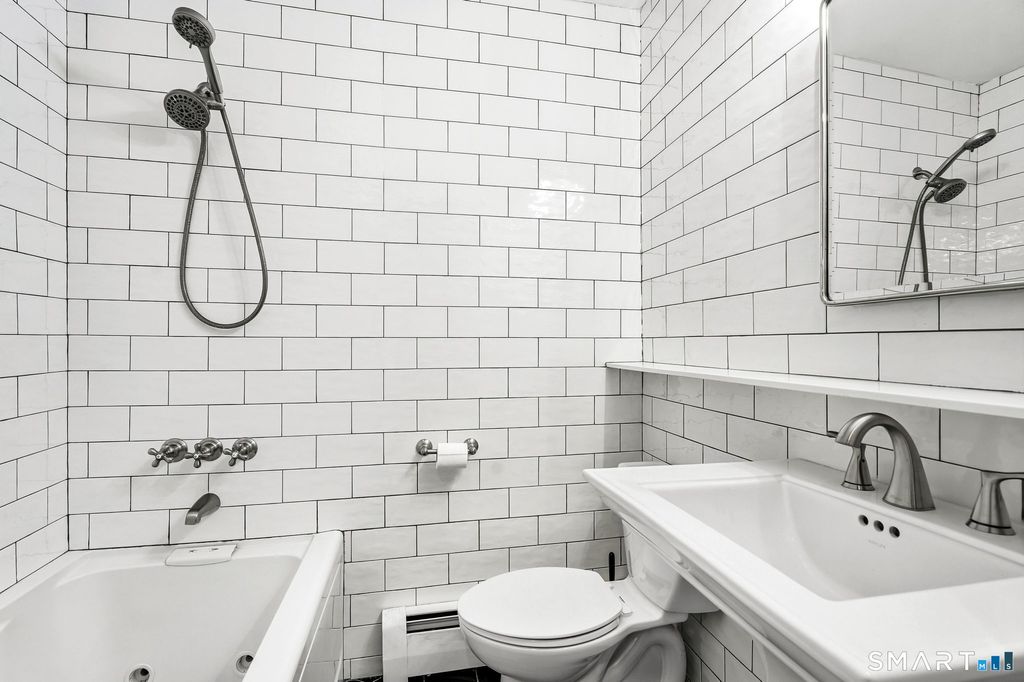 Updated 3 bedroom townhouse in Nor-West!! - Stunning kitchen with white shaker-style cabinets, quartz counters, subway tile backsplash, and stainless steel appliances!! - Kitchen also features custom filtered-water & instant-hot water faucet! - Light and bright unit with hardwood floors throughout! - Very unique and rarely available townhouse layout offers direct / private entry into the unit (no shared hallways) - Spacious living room features recessed lighting and sliding door out to private patio space! - Updated first floor bathroom with distressed shiplap feature wall - 2nd floor features primary bedroom with updated en-suite bathroom & walk-in closet! - 2 additional bedrooms, and another updated bathroom featuring subway tile walls - Private washer / dryer in unit - Pull down attic stairs for great storage + additional storage locker in the complex - *HOA fee includes heat & hot water!* - Short walk to the beautiful association pool + clubhouse! - Park-like setting with large, central grass courtyard - All located on the Westport border, and convenient to shopping, dining, and all that Norwalk and Westport have to offer! - Reserved parking spaces just outside the unit (234 & 235), 3rd parking space can be rented for $20 / month
