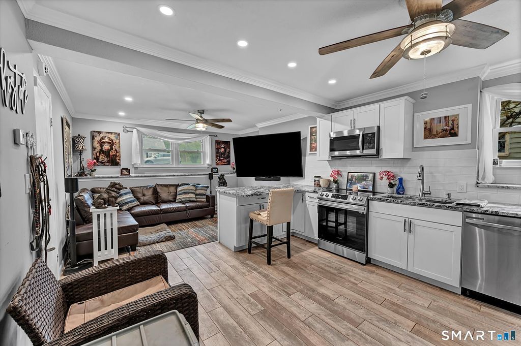 Wonderful raised ranch located in a highly sought-after neighborhood on the Wallingford town line. This spacious home features a large living room with a beautiful bay window, a formal dining room, and an updated kitchen with granite countertops and stainless steel appliances. Offering 3 bedrooms and 1.5 baths, the home boasts over 2,100 square feet of living space. Step outside to a large deck overlooking a fully fenced-in yard-perfect for entertaining or relaxing. The BRAND NEW lower level adds incredible versatility, complete with a full kitchen, and flexible space ideal for a den, living area, or additional bedroom, plus an enclosed porch. Additional highlights include solar, 2-car garage, central air, and a level lot. Conveniently located near major highways and shopping centers, this home offers both comfort and accessibility.