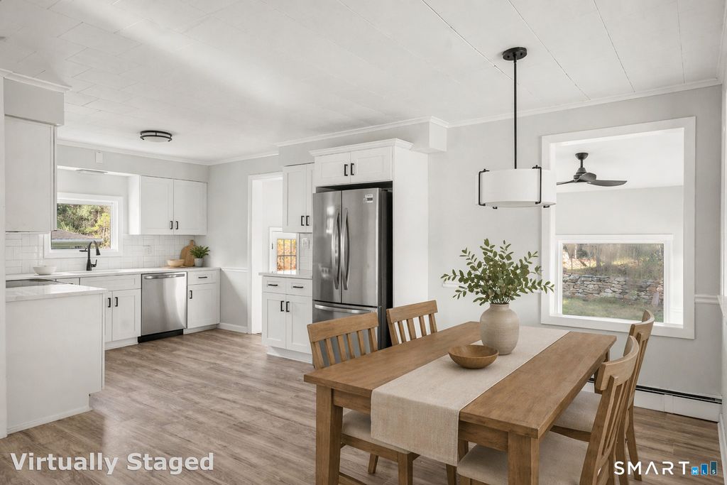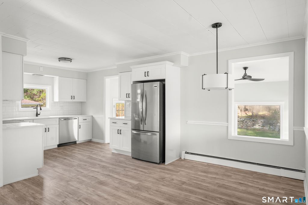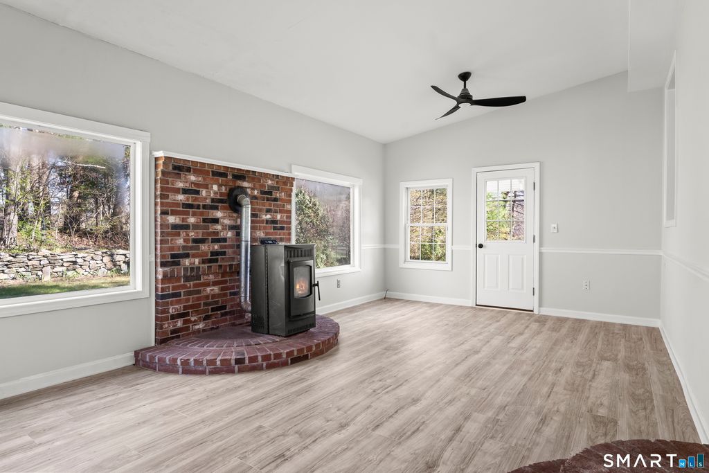 Welcome to 44 Red Bridge Rd in Thompson, CT - a charming 3-bedroom, 1-bathroom home offering 1,266 square feet of comfortable living space in a convenient location across from a park and just minutes to town. This home blends everyday functionality with thoughtful touches that make it easy to enjoy both inside and out. The kitchen features quartz countertops and stainless steel appliances, creating a clean, modern space that's both practical and inviting. A brand new roof adds an extra layer of peace of mind, while the home's bright and open living areas are filled with natural light, giving it a warm and welcoming feel throughout. The layout offers three comfortable bedrooms along with a cozy family room highlighted by a pellet stove, perfect for adding warmth and character during the colder months. A full basement provides plenty of room for storage, hobbies, or future possibilities, and the detached one-car garage with ample storage room offers added convenience and flexibility. Step outside and enjoy a backyard designed for making memories - whether it's gathering around the fire pit, watching those play in the tree house, or simply relaxing and taking in the peaceful setting across from the park. This is a home that offers more than just space - it offers comfort, charm, and a lifestyle that's easy to enjoy.