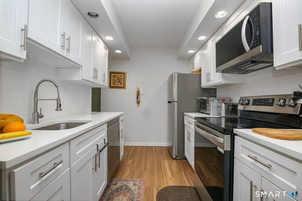 Welcome to 50 Aiken Street #433, a beautifully renovated 1-bedroom, 1.5-bath condo in Rolling Ridge, one of Norwalk's most well-maintained communities. Step inside to a bright, open-concept living and dining area with a dedicated study space -- all flowing seamlessly to a private balcony perfect for morning coffee or evening relaxation. The kitchen has been completely transformed with brand new LG appliances (dishwasher, electric stove/oven, refrigerator), new cabinets, stainless steel faucet, fresh countertop, and vinyl flooring. The primary bedroom features a walk-in closet and shares access to a fully updated bathroom with new toilet, vanity, mirrors, lighting fixtures, and tile flooring. A powder room off the entry provides convenience for guests. Recent upgrades include new carpet, fresh paint throughout, new AC, and updated lighting fixtures -- move-in ready and meticulously cared for. In-unit laundry adds everyday convenience. Rolling Ridge offers resort-style amenities including pool, clubhouse, tennis courts, and dog park, with HOA covering heat, hot water, water, sewer, trash, snow removal, and grounds maintenance. Located just off Main Avenue, you're minutes from restaurants, grocery stores, and everything Norwalk has to offer. This is a rare opportunity to own a fully renovated home in a community that truly delivers.
