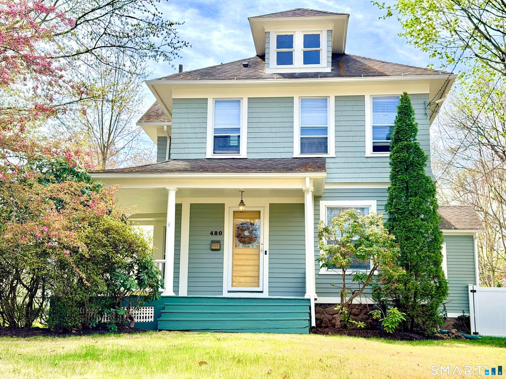 Charming Victorian in the heart of Westville's desirable Maplewood neighborhood! Situated on a deep, level corner lot with mature, professionally maintained landscaping, this impeccably maintained home blends timeless character with thoughtful updates. Positioned well back from the street for added privacy, the property features a welcoming wraparound porch, rear deck, balcony, and fire pit area, ideal for relaxing or entertaining, plus off-street parking for two cars. Inside, the bright interior showcases beautiful original hardwood floors (including select inlay details), crown molding, and period trim throughout. The light-filled eat-in kitchen with stainless steel appliances flows into the dining room and inviting living room with fireplace and built-in glass cabinetry. Upstairs, a spacious primary bedroom offers a large walk-in closet and direct access to an unfinished walk-up attic with excellent expansion potential. The upper full bath features classic subway tile in excellent condition, while the main level full bath has been recently updated. Additional highlights include recently painted interior and exterior, Nest thermostat, motion-sensor lighting, and ample storage with unfinished basement and attic. Ideally located near Westville Village with easy access to downtown New Haven, Yale University and Yale New Haven Hospital, and excellent commuter convenience via Route 15, I-91, I-95, and Metro-North Railroad.