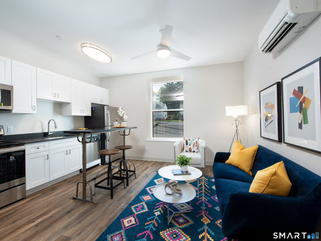 One bedroom apartment at Goodwin Park on Ridge featuring a modern open layout and updated finishes throughout. Includes stainless steel appliances, in unit washer and dryer, and energy efficient heating and cooling systems. The property offers a fitness room, patio with BBQ area, and additional outdoor green space. Convenient location with quick access to downtown Hartford, major highways including I 84 and I 91, and nearby shopping and dining.